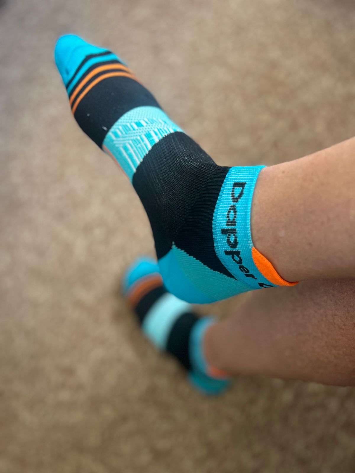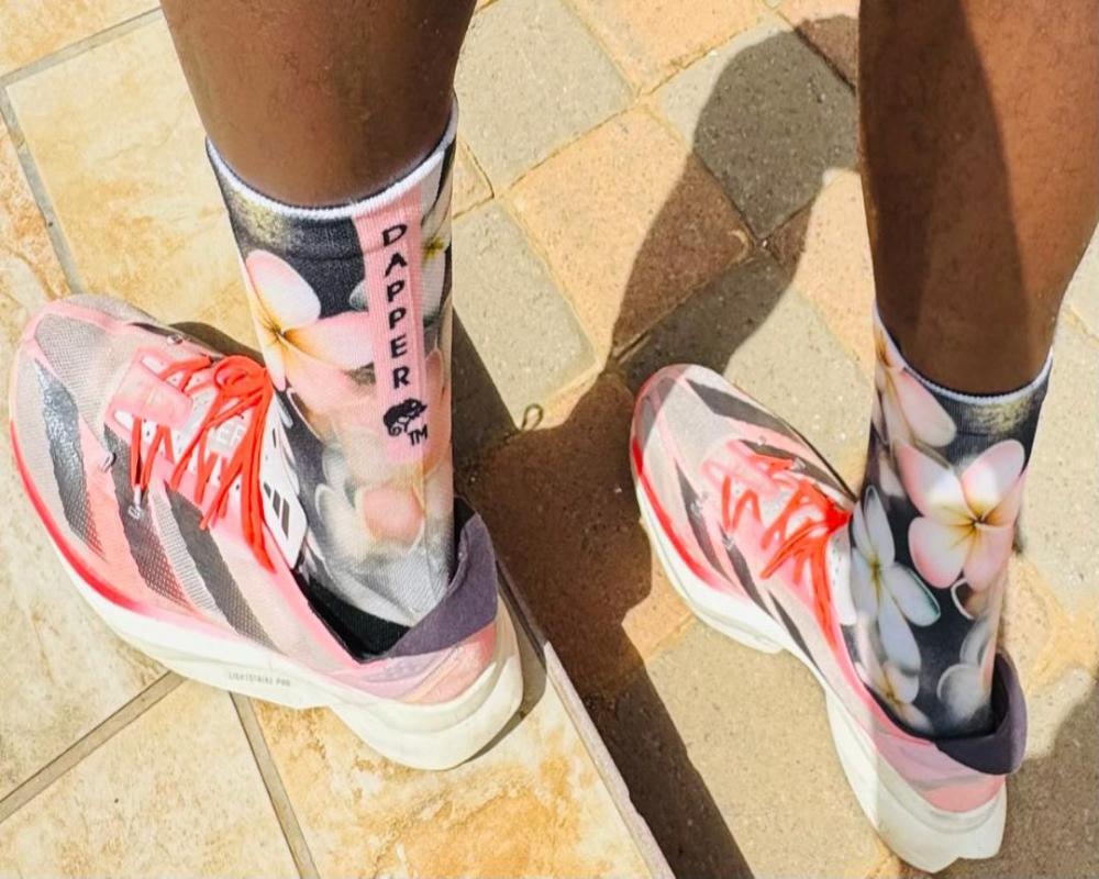 Tried these beauties from Dapper Chameleon on an indoor cycle and outdoor run. Lightweight and breathable.No discomfort or blisters! Not just beautiful but functional too.