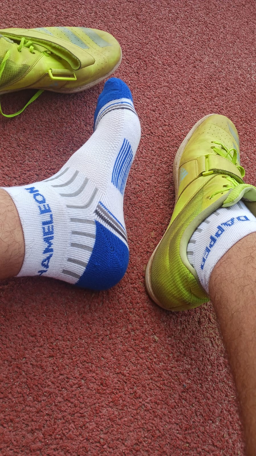 "The socks are incredibly soft and comfy! The men's size fits perfectly (even for a size 12 shoe) the best part is that the sand didn’t even get onto my feet like with other socks! The thickness and softness make a huge difference inside my spikes, providing a softer landing for my jumps."