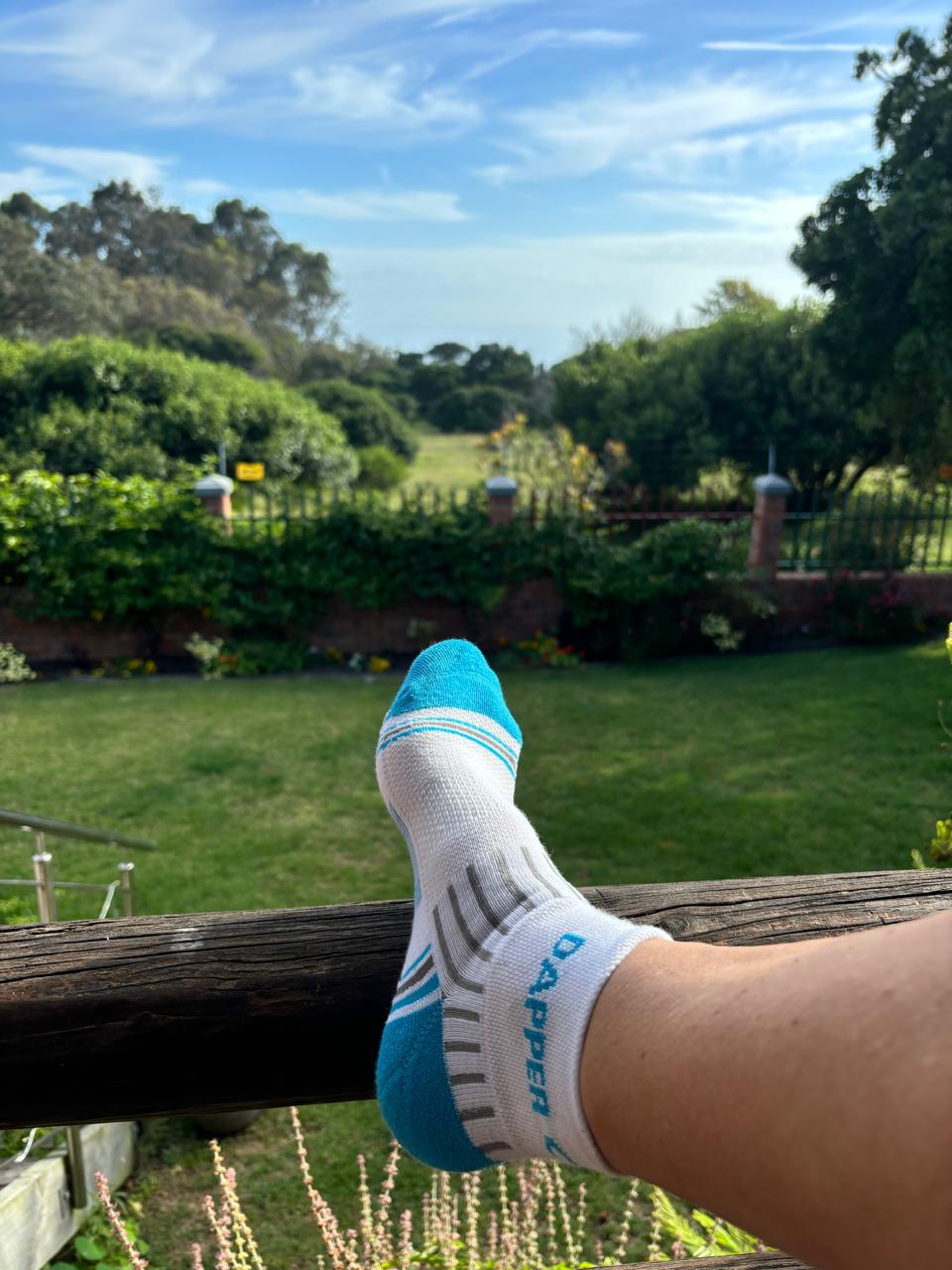 Baie gemaklik, en maklik om aan te trek, partykeer is kousehalf te styf, veral die langer kouse (groot plus met triathlon) Geen blase of branderig, my voete ook nie geglei in my tekkies nie.Regtig baie nice! En looooove die prints🤩super well done Dapper Chameleon!