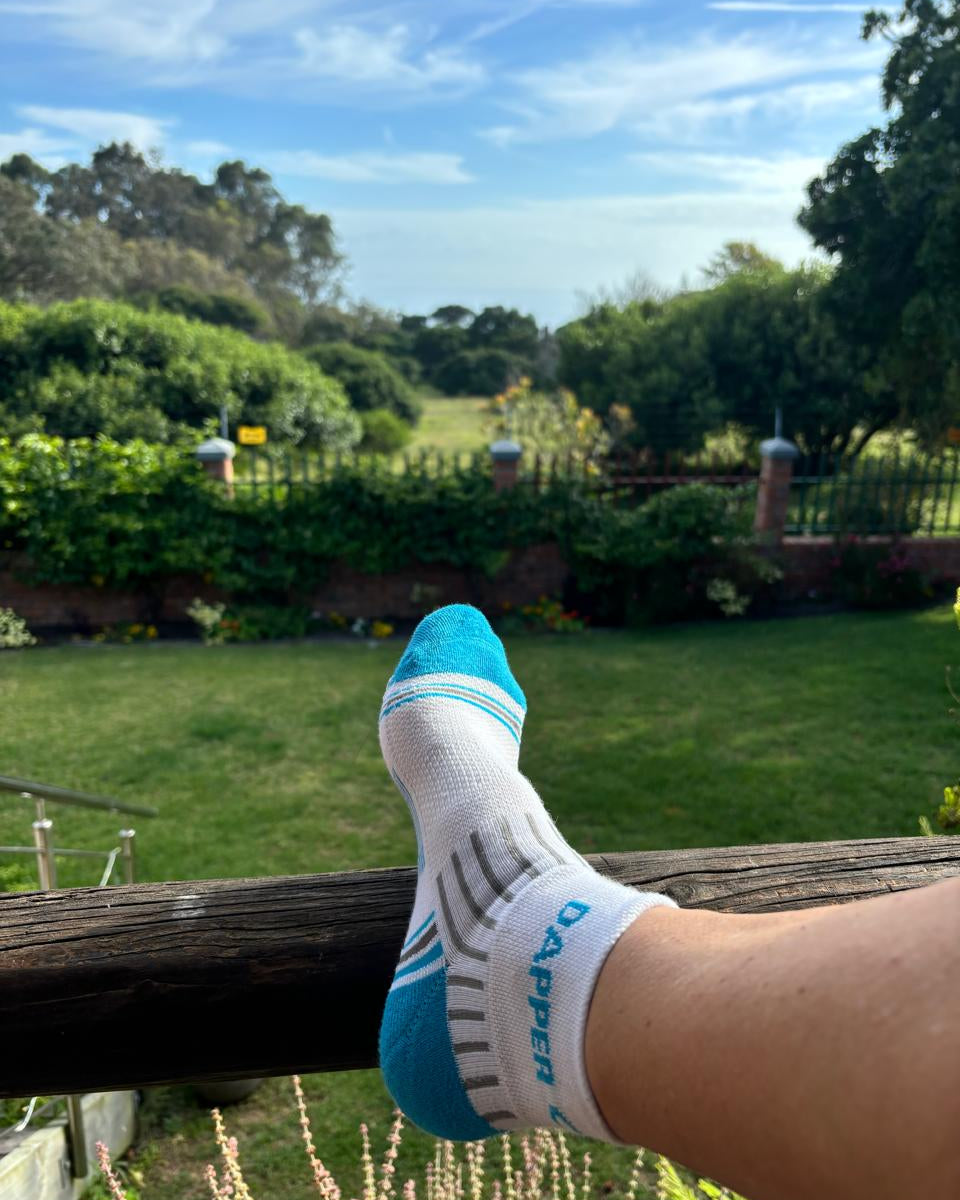Tried these beauties from Dapper Chameleon on an indoor cycle and outdoor run. Lightweight and breathable.No discomfort or blisters! Not just beautiful but functional too.